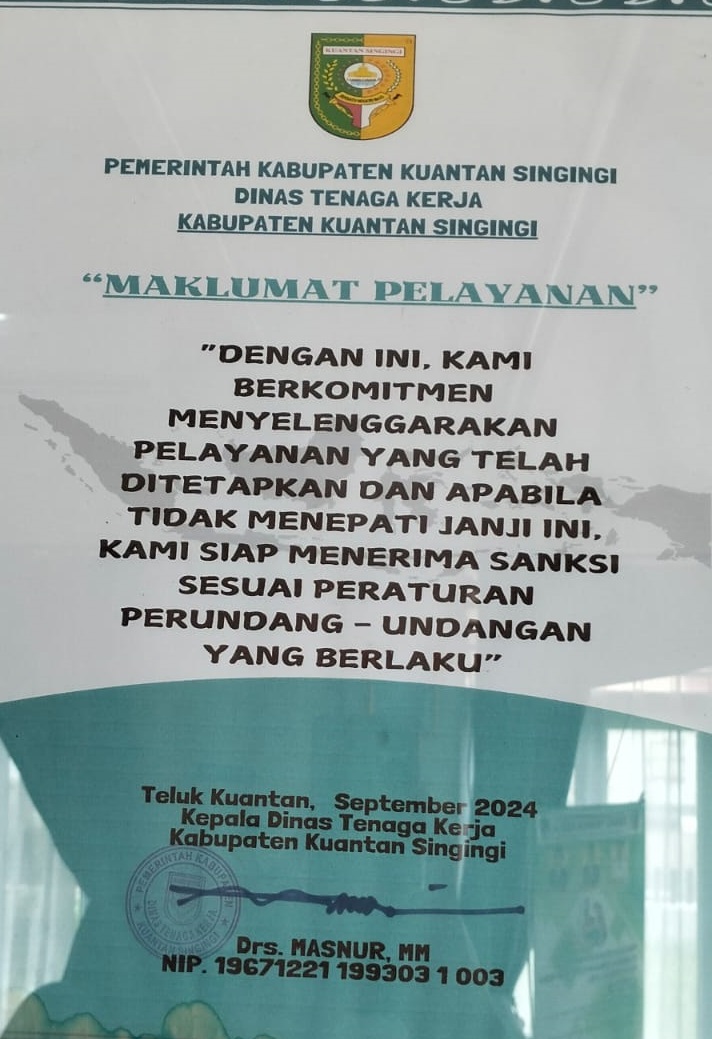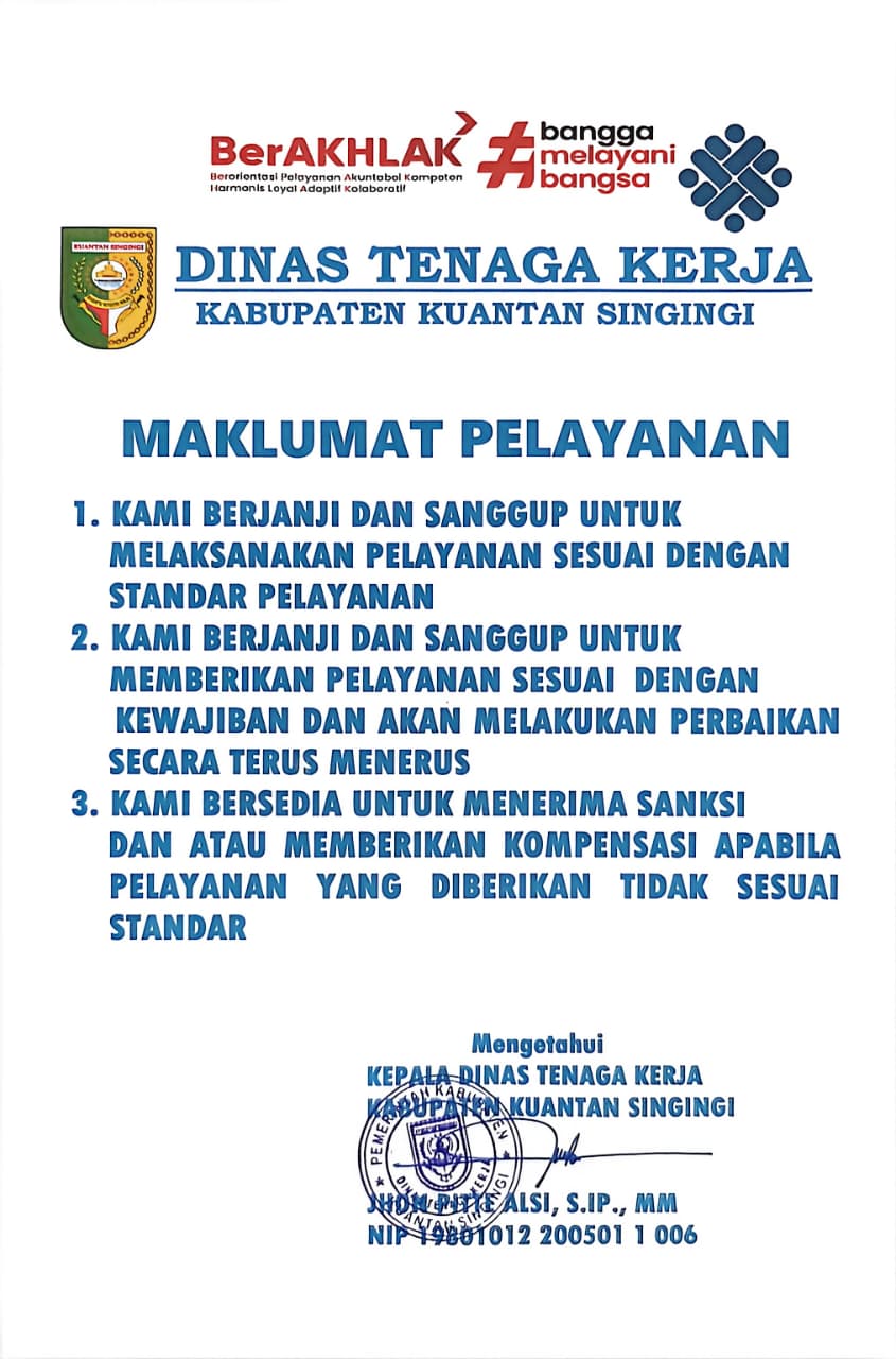 Maklumat Pelayanan Dinas Tenaga Kerja Kabupaten Kuantan Singingi